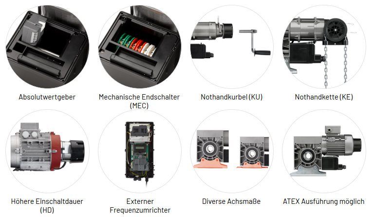 Die Rolltorantriebe der Serien MWF und MDF sind Aufsteckantriebe mit digitalen