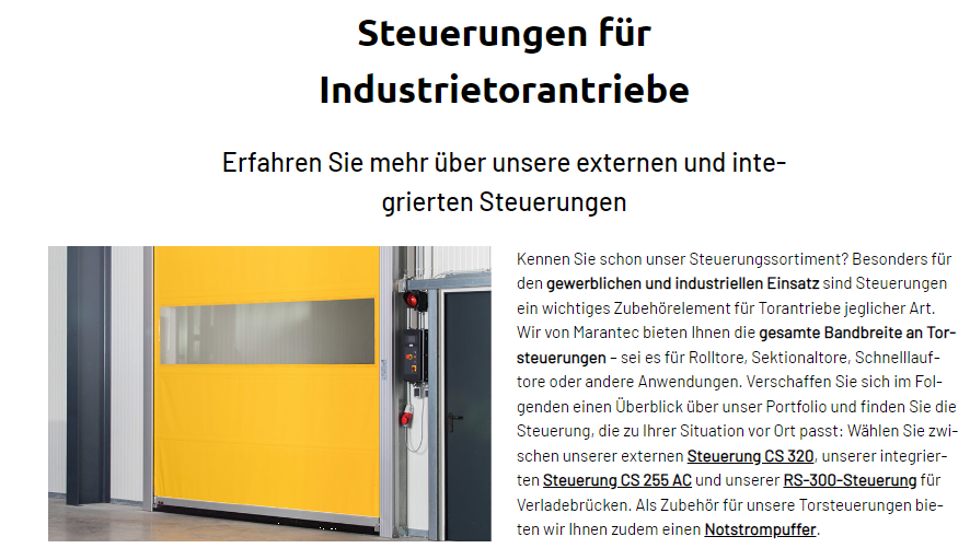 Bandbreite an Torsteuerungen – sei es für Rolltore, Sektionaltore,