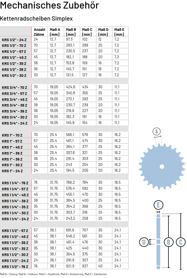 Marantec Kettenradscheiben, Simplex, KRS 1/2“ - 24 Z