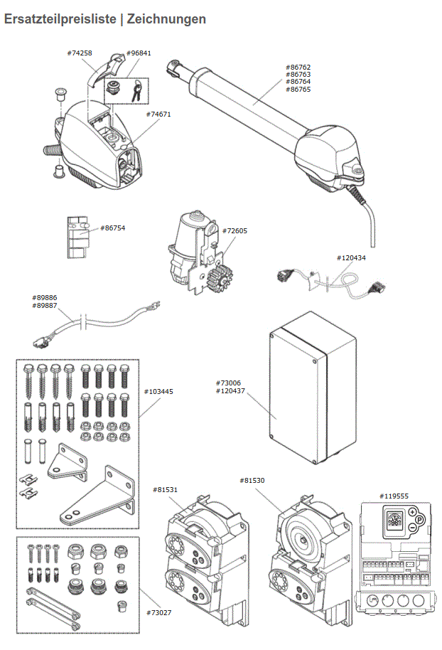 Hier finden Sie alle lieferbaren Ersatzteile für die Drehtorantriebe von Marantec:
