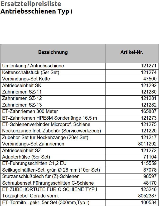 Ersatzteile zu den Industrietore / Antrieben