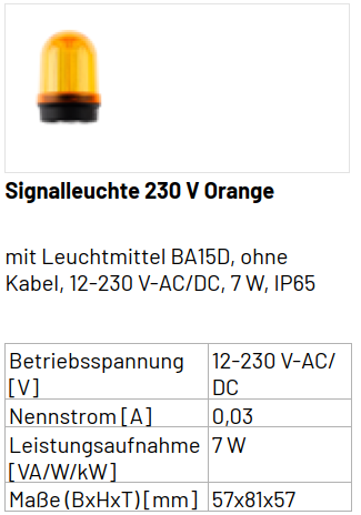 Marantec Signalleuchte, 230 V, Orange