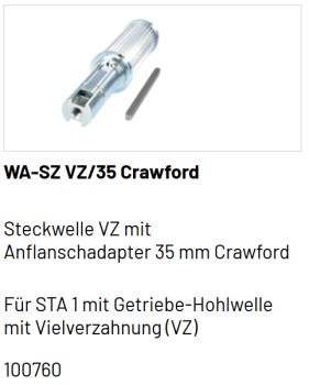 Marantec Steckwelle, Vielverzahnung mit Anflanschadapter für Federwelle 35 mm Passfederprofil, Crawford Tore