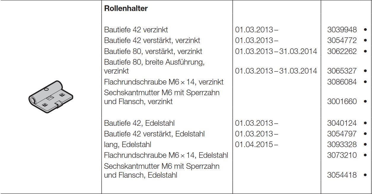 Hörmann Rollenhalter Bautiefe 42 lang Edelstahl für Industrie-Baureihe 50, 3093328