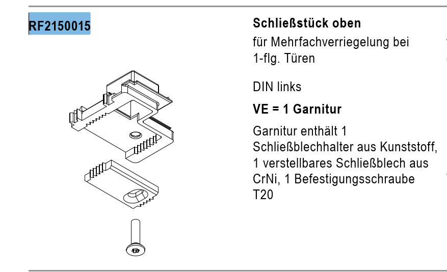 rp fineline 70D, Schließstück oben für Mehrfachverriegelung bei 1-flg.Türen, DIN links, Artikel Nummer, RF2150015, 30058551 - Kopie
