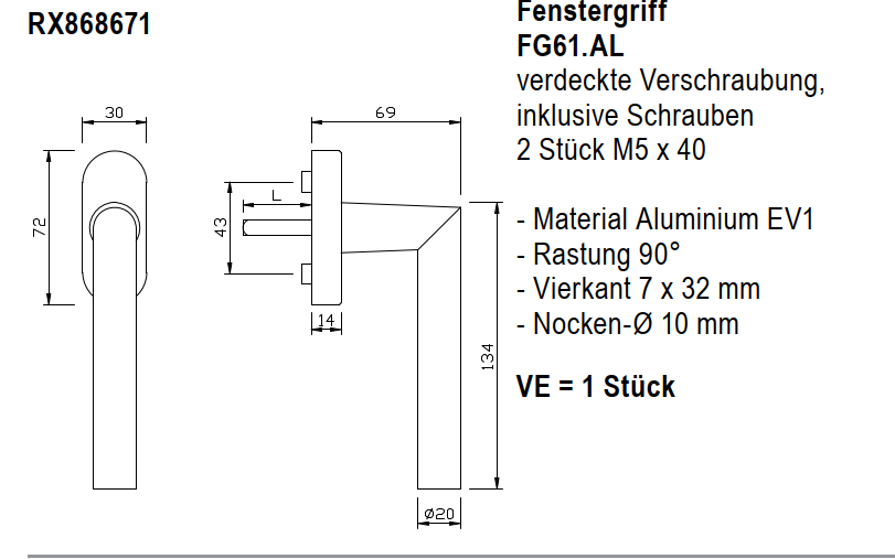 rp fineline 70W, Fenstergriff FG61.AL verdeckte Verschraubung, Artikel Nummer RX868671