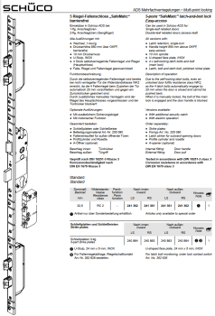 Schüco ADS Mehrfachverriegelungen, 5 Riegel-Fallenschloss „SafeMatic“ barrierefrei, RC2, Dornmaß 32,5 mm, 241361, LS nach außen