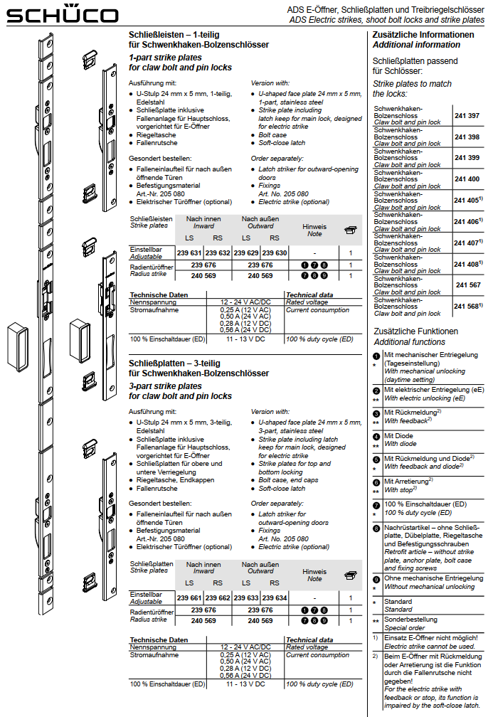 Schüco ADS Schließleisten–1-teilig für Schwenkhaken-Bolzenschlösser, 239629, LS nach außen, einstellbar