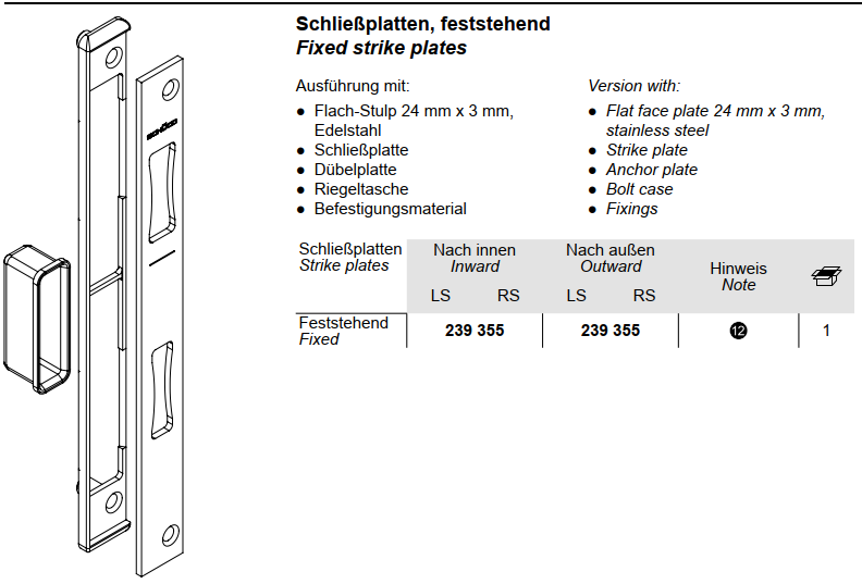 Schüco ADS Schließplatten, feststehend, 239355, nach innen und nach außen