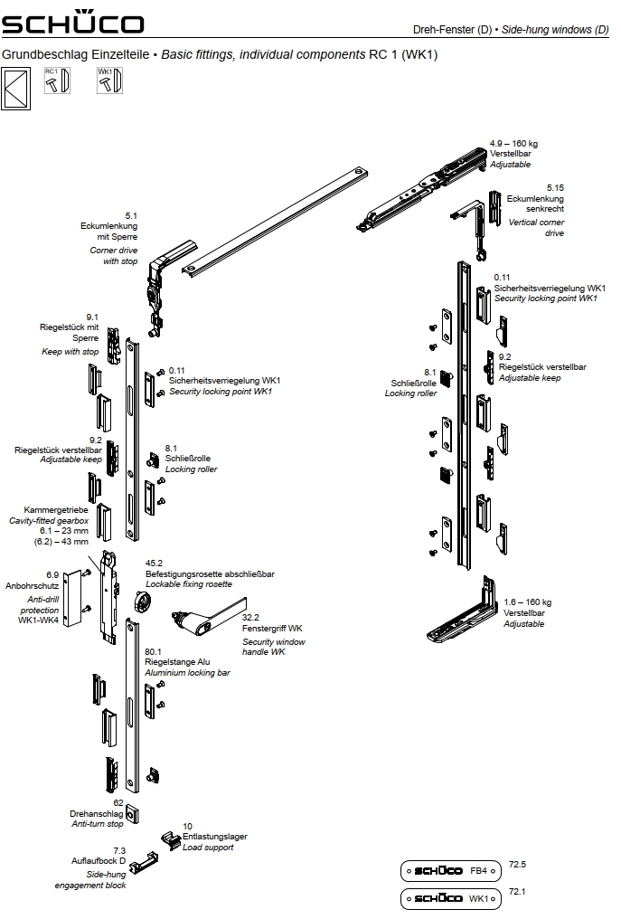 Schüco Drehschere, 160 Kg, verstellbar AWS / AvanTec, 275 396 LS, RC 1, WK1