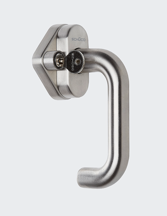 Schüco Fenstergriff, abschließbar, mit KvD Funktion, 269015, INOX, DIN Rechts