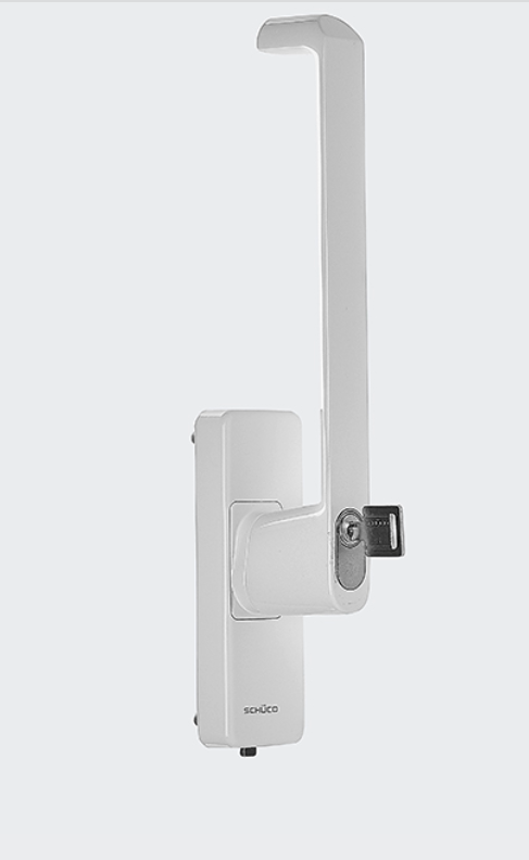 Schüco Fenstergriff (Handhebel), abschließbar, Verkehrsweiß, DIN rechts, Falt-Schiebe, PASK-Anlagen