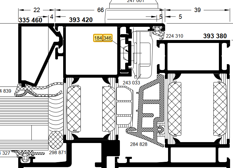 Schüco Riegelstange ALU, für Profilsystem Royal S vorgänger, jetzt AWS, Artikelnummer 184346