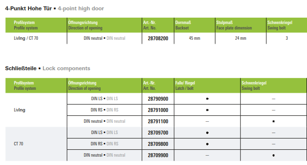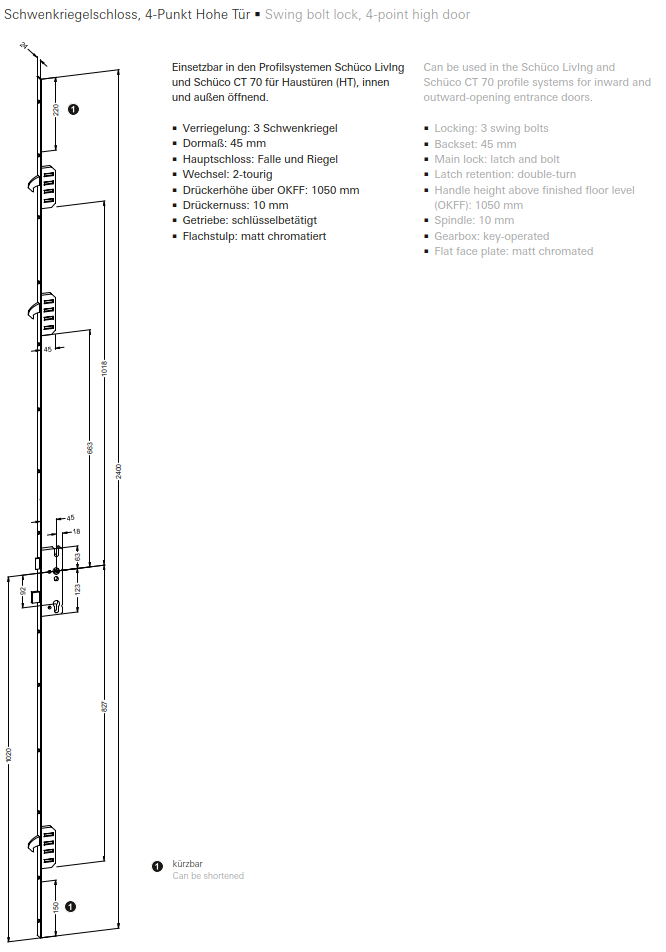 Schüco Schwenkriegelschloss, 4-Punkt Hohe Tür, 28708200
