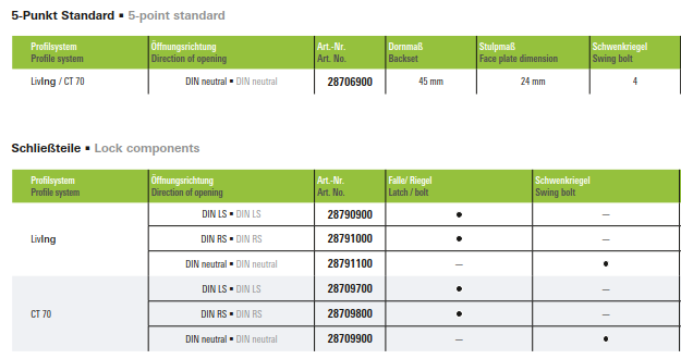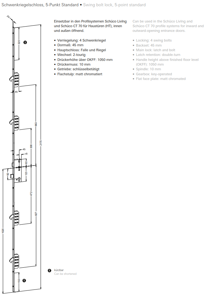 Schüco Schwenkriegelschloss, 5-Punkt Standard, 28706900