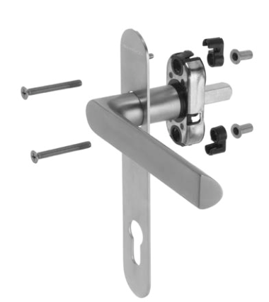 Schüco Türdrücker Alu, RAL 9005, gerade Ausführung, ovale Langschild-Rosette, für Rohrrahmentüren, 240 231, Türschlössern mit 10er Nuss