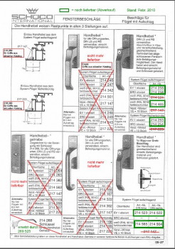 Übersicht Ersatzteile für Schüco Getriebegriff Aluminiumfenster